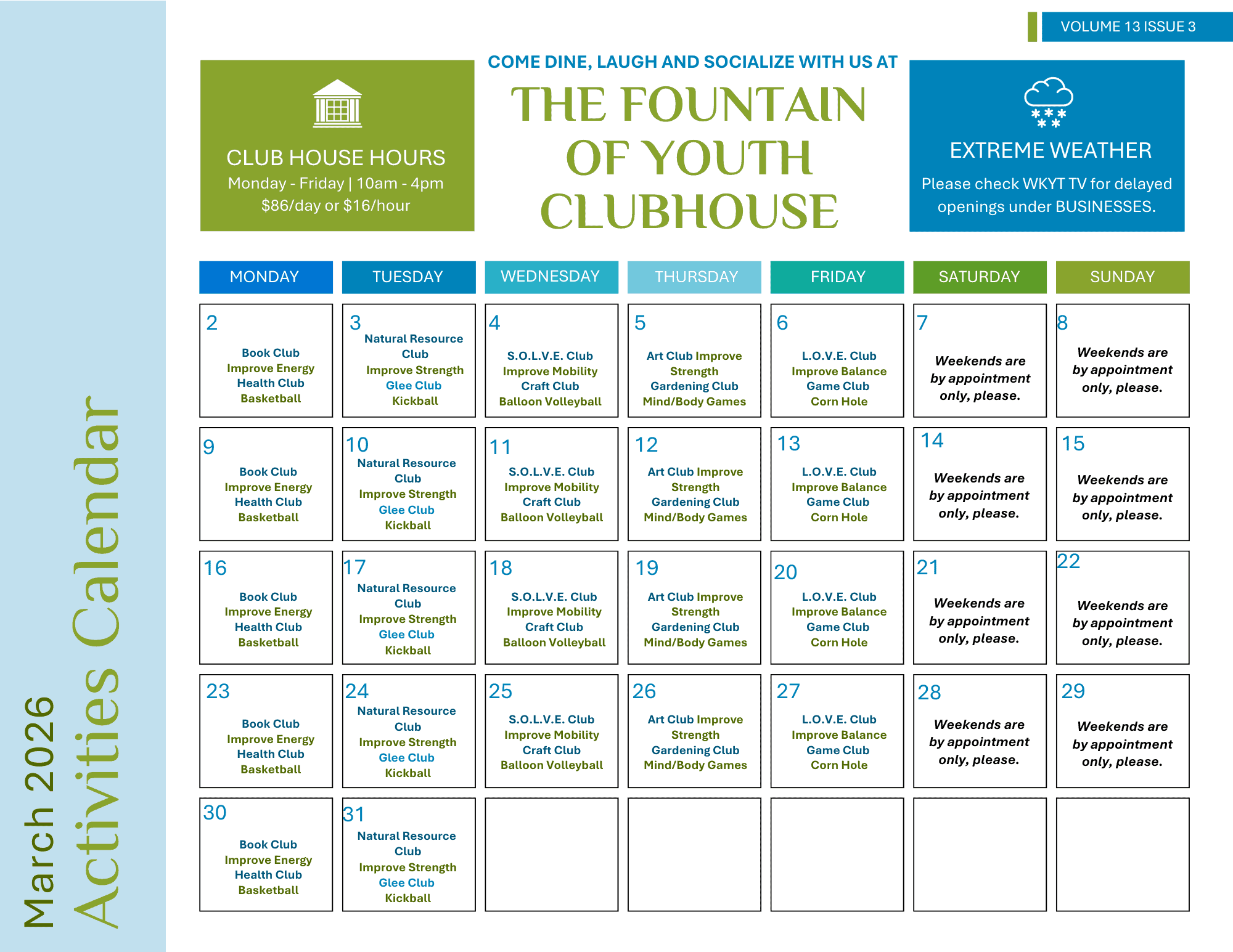 The Fountain of Youth Clubhouse offers medical services so members can enjoy a club and spa like atmosphere while improving their physical, mental, and emotional health with other members.